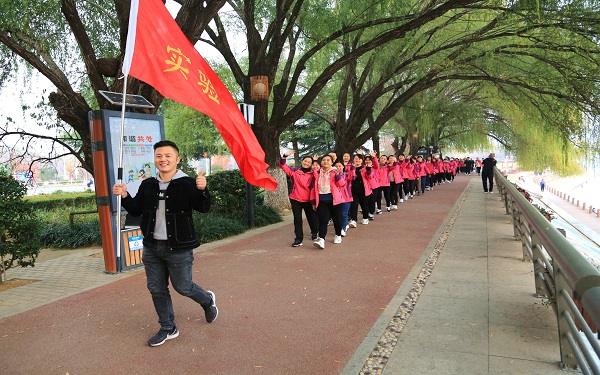 為豐富教職工文化生活,倡導(dǎo)綠色低碳、文明健康的生活方式,11月16日下午,漯河市實(shí)驗(yàn)幼兒園舉行“親近自然 健康同行”教職工冬日遠(yuǎn)足活動(dòng),讓大家在工作之余融入大自然、感受大自然,體驗(yàn)健身運(yùn)動(dòng)的樂趣。下午4時(shí)10分,全體教職工在操場(chǎng)集合,主持人為此次遠(yuǎn)足活動(dòng)做組織動(dòng)員,希望老師們能夠充分放松心情,沿途欣賞美麗的沙澧河風(fēng)光,體驗(yàn)運(yùn)動(dòng)樂趣,發(fā)現(xiàn)自然之美;希望大家一鼓作氣、堅(jiān)持到底,每個(gè)人都能順利抵達(dá)目的地!“出發(fā)”!鮮艷的旗幟迎風(fēng)招展,動(dòng)感的走步音樂氣氛高昂,大家精神抖擻、大步行進(jìn)在沙澧河畔,活力四射的隊(duì)伍不時(shí)引來路人的注視和詢問。大家一邊欣賞沿途風(fēng)景,一邊暢談著生活和工作中的趣事,冬日的暖陽(yáng)把余暉灑在波光粼粼的河面,也把溫暖灑在每張青春的臉龐。一路歡歌笑語(yǔ),大家徜徉在這難得的閑暇時(shí)光,愜意開心、心情格外舒暢,不由自主地拿起手機(jī)記錄下珍貴又美好的畫面。
