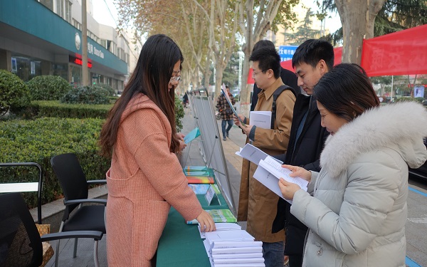 12月4日,公司在黃河路營(yíng)業(yè)大廳門(mén)口開(kāi)展國(guó)家憲法日宣傳活動(dòng)。