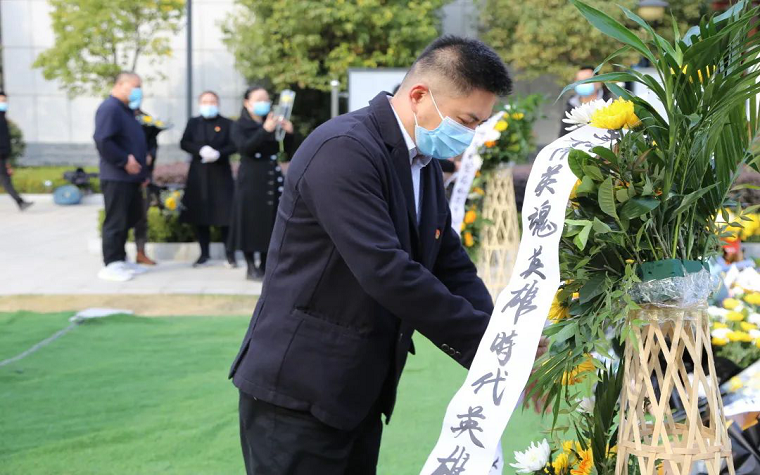 肅穆的烈士墓前,大家靜默肅立,舉行了簡短而又隆重的祭奠儀式,向王焯冉烈士敬獻(xiàn)花環(huán)、全體鞠躬并默哀,中心黨委書記高云、副主任應(yīng)勇整理挽聯(lián),表達(dá)深切的懷念之情。隨后,全體人員陸續(xù)緩步上前,向烈士墓碑敬獻(xiàn)鮮花并靜靜環(huán)繞王焯冉烈士墓碑一周,寄托對英雄的無限哀思和懷念。