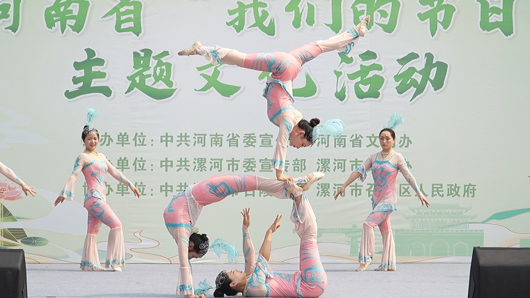 啟動(dòng)儀式結(jié)束后,召陵區(qū)市民廣場(chǎng)進(jìn)行了文藝匯演和文明市集活動(dòng),演出河南墜子、相聲、雜技、大鼓書等節(jié)目,展示“憶路相伴 守護(hù)記憶”黃手環(huán)關(guān)愛(ài)老人巾幗文明實(shí)踐項(xiàng)目等3個(gè)來(lái)自省直單位的文明實(shí)踐項(xiàng)目,和“傳承非遺文化 守護(hù)精神家園”文明實(shí)踐項(xiàng)目等19個(gè)來(lái)自漯河市的文明實(shí)踐項(xiàng)目,涵蓋了文化藝術(shù)、非遺技藝、便民服務(wù)等多個(gè)領(lǐng)域,充分展現(xiàn)了新時(shí)代文明實(shí)踐工作的豐碩成果,體現(xiàn)了對(duì)端午傳統(tǒng)節(jié)日的獨(dú)特理解和傳承創(chuàng)新。