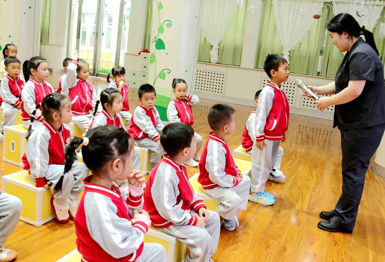 “拉拉手,我們都是好朋友——”王顥凝副校長從故事《校園守護(hù)者》出發(fā),用貼近孩子生活的情境,引導(dǎo)他們分辨哪些行為會讓人開心,哪些行為會讓人難過。她將抽象的規(guī)則要求,轉(zhuǎn)化為孩子們易于理解的“友好行為”與“不友好行為”,用貼合幼兒認(rèn)知水平的方式,引導(dǎo)他們建立初步的是非觀念?!霸瓉聿淮蛉?、不搶玩具、不說傷人的話,就是在做校園小衛(wèi)士!”一位小朋友在互動環(huán)節(jié)大聲說道。王副校長鼓勵每個孩子都成為“守護(hù)小能手”,不僅要管好自己,還要在見到別的小朋友被欺負(fù)時勇敢站出來,及時告訴老師。