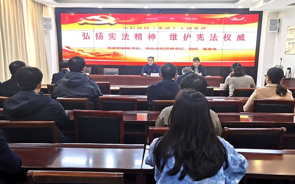 維護憲法權威》專題講座中,市政府副秘書長、漯河市信訪局黨組書記、局長董春生結合日常信訪工作,為全局干部職工講述了中國憲法故事,使大家認識到在信訪工作中要依憲依法依規(guī)履職,做制度執(zhí)行的表率。