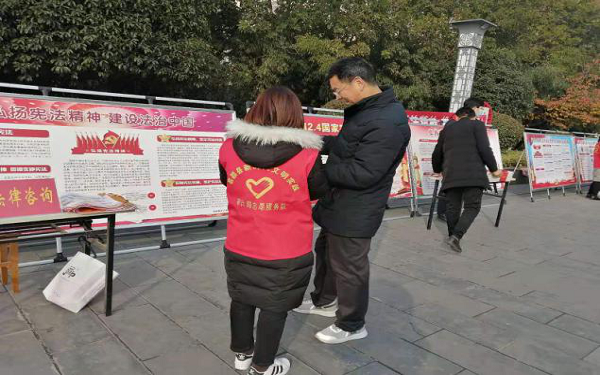 活動(dòng),向群眾發(fā)放憲法讀本和憲法宣傳單,進(jìn)一步弘揚(yáng)了憲法精神,提高了群眾的法律素質(zhì),在全社會(huì)營造人人尊法、學(xué)法、守法、用法的濃厚氛圍。